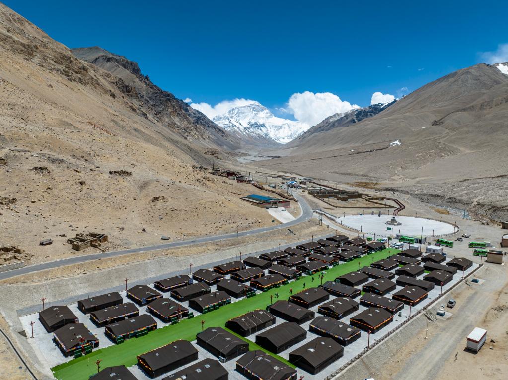 圖為珠峰游客大本營(yíng)的帳篷旅館(5月20日攝,無人機(jī)照片)。新華社記者孫非 攝