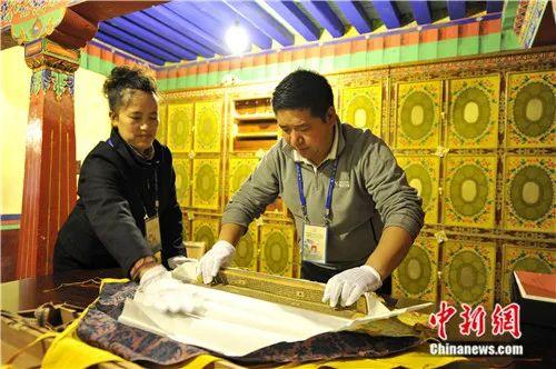二是各類文物古籍得到保護(hù)和利用。西藏?fù)碛胸S富的歷史文物資源,截至2022年底,全區(qū)已調(diào)查登記各類文物點(diǎn)4468處,各級(jí)文物保護(hù)單位2373處,可移動(dòng)文物達(dá)51萬件。國(guó)家在西藏大力實(shí)施重大文物保護(hù)項(xiàng)目,繼1972年維修大昭寺之后,持續(xù)投入巨額資金對(duì)布達(dá)拉宮、羅布林卡、大昭寺等文物古跡進(jìn)行維修保護(hù),僅1989年至1995年,國(guó)家就投入2億多元(人民幣,下同)對(duì)布達(dá)拉宮進(jìn)行維修及廣場(chǎng)擴(kuò)建。中共十八大以來,中央財(cái)政累計(jì)向西藏投入資金17.16億元、實(shí)施131個(gè)文物本體保護(hù)維修項(xiàng)目,西藏自治區(qū)財(cái)政投入資金4億元、實(shí)施86個(gè)文物本體保護(hù)維修項(xiàng)目。2018年底,西藏啟動(dòng)了周期10年、投資3億元的布達(dá)拉宮文物(古籍文獻(xiàn))保護(hù)利用項(xiàng)目,目前已經(jīng)完成一期項(xiàng)目的驗(yàn)收。