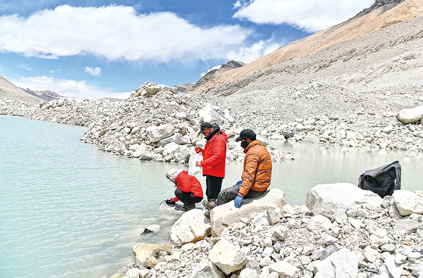 “我們沿著喜馬拉雅山脈做了很多工作,采集了2000多份樣品?!眲⒓褲M懷憧憬地說,“我們會(huì)從大本營(yíng)出發(fā)努力接近海拔7000米區(qū)域,完成15個(gè)雪冰樣品和15個(gè)沙石樣品采集。希望通過一塊塊拼圖,努力還原青藏高原形成演化的‘大圖紙’?!?/p>