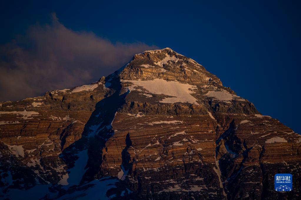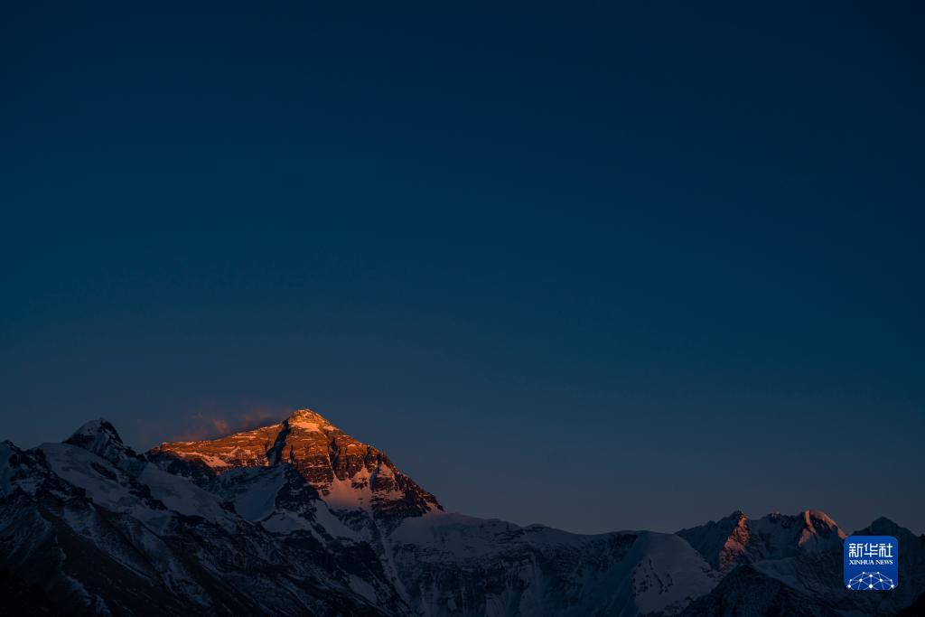 這是5月9日日落時分拍攝的珠穆朗瑪峰。新華社記者 孫非 攝