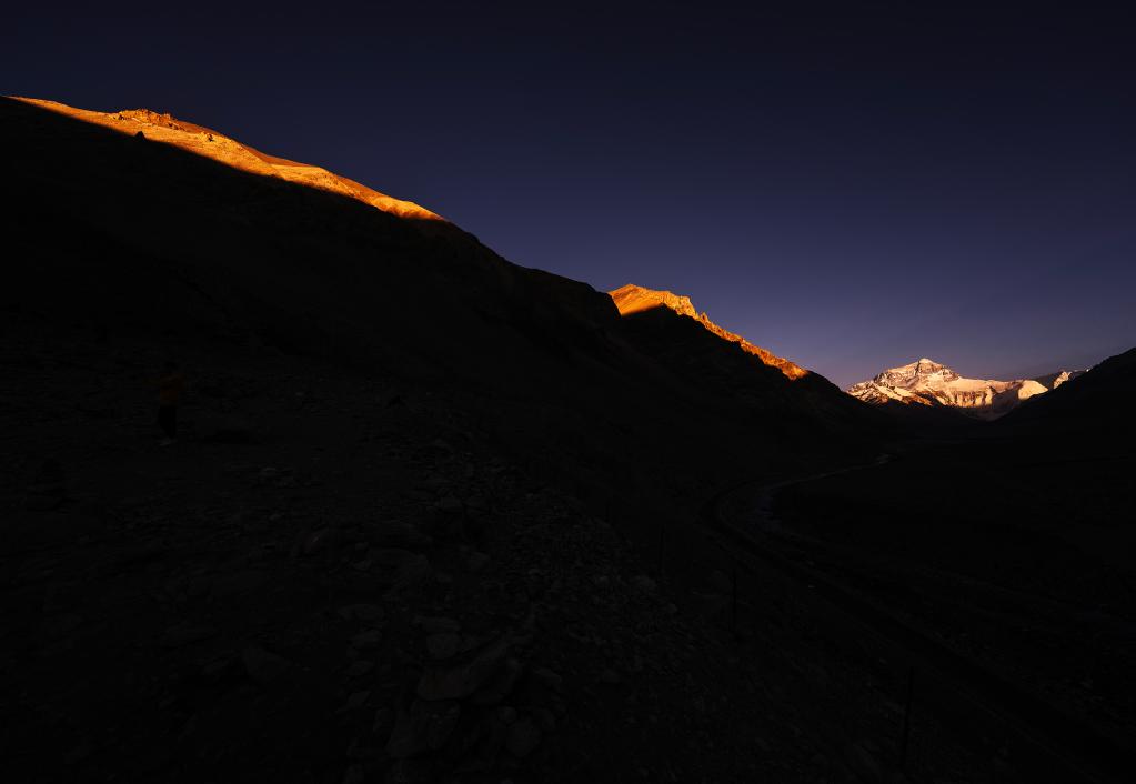 巍峨的珠穆朗瑪峰屹立于青藏高原,珠峰地區(qū)氣候復雜,景色瞬息萬變。“國道之行 從雪山奔向大?!眻蟮澜M在落日時分來到珠穆朗瑪峰腳下,記錄下世界之巔的“日照金山”壯美場景。