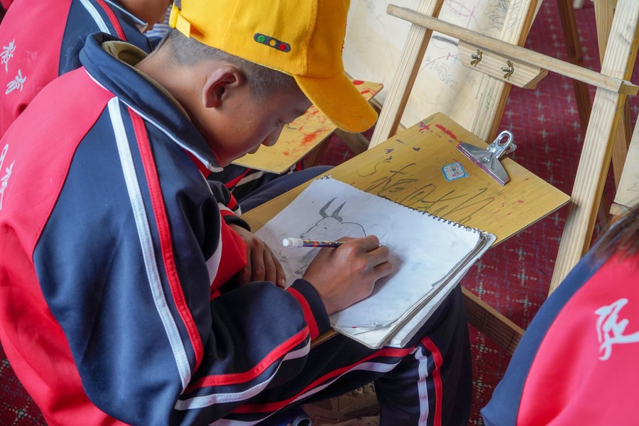 6月5日,阿旺尼曲(左一)在上美術(shù)課。