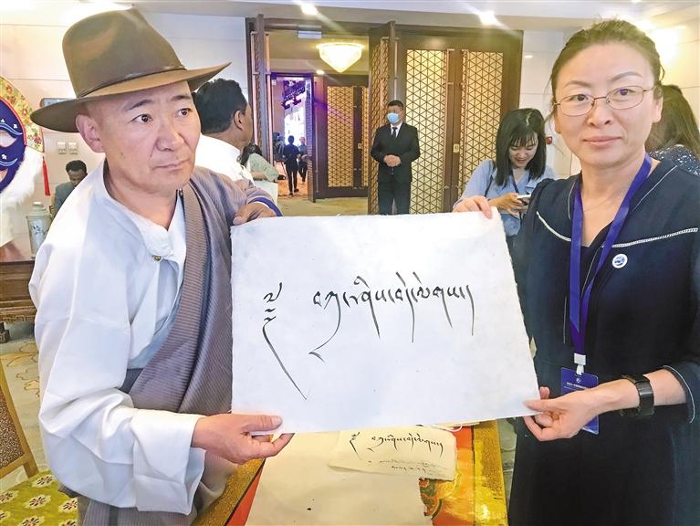 論壇會上,鋪開獨特的藏紙,手持光潤的竹筆,48歲的藏文書法家扎西頓珠鄭重寫下“扎西德勒”四個字,贈予前來參會的中外嘉賓。作為國家級非物質文化遺產代表性項目藏文書法(尼赤)的代表性傳承人,扎西頓珠希望讓更多人感受并了解西藏傳統(tǒng)書法之美。“這次論壇期間,我先后向中外嘉賓送上了300多幅書法作品,我們藏族傳統(tǒng)文化能被全世界看見并受到喜愛,推動各民族交往交流交融,感到非常開心和自豪?!眲倧谋本┗貋聿痪?,閑不住的扎西頓珠又在準備參加藏博會的書法作品,傳播藏文書法文化。