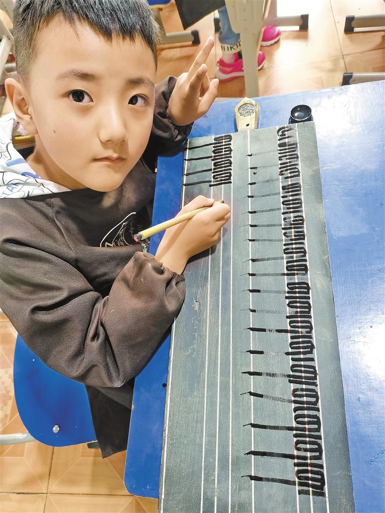 一位小朋友在自治區(qū)圖書館里通過“墻星”學習尼赤書法。