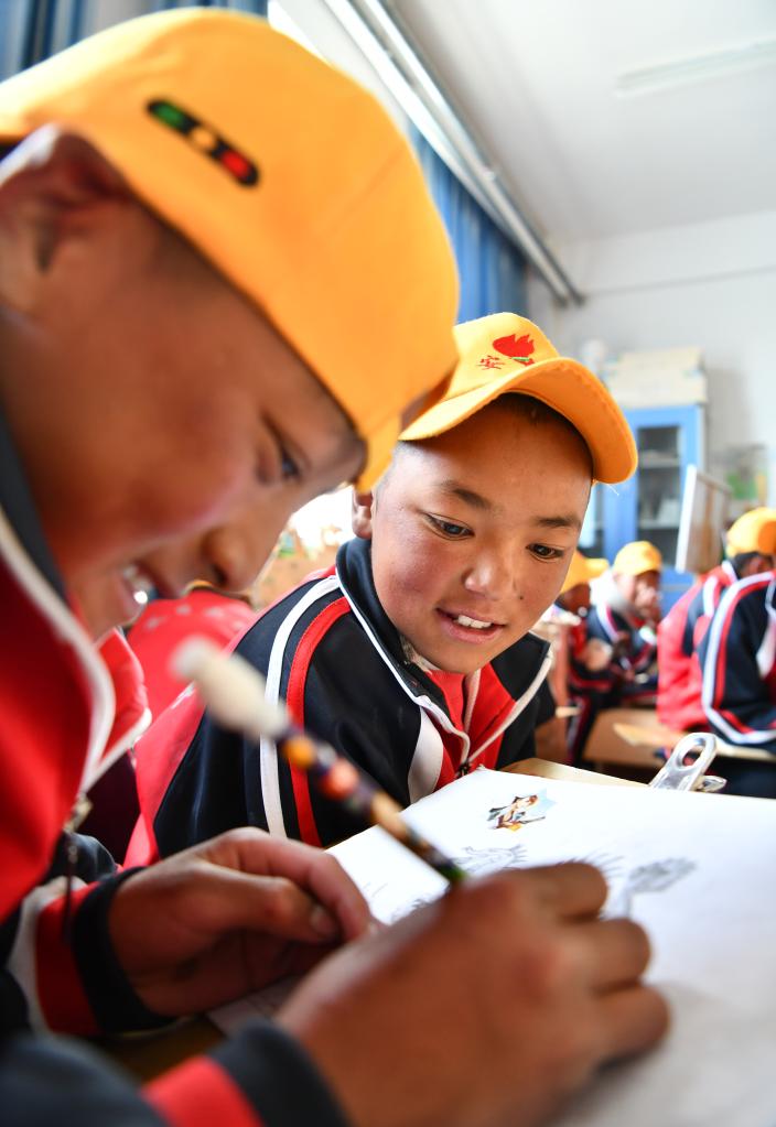 6月5日,扎西宗鄉(xiāng)完全小學的學生在上美術課。新華社記者 費茂華 攝