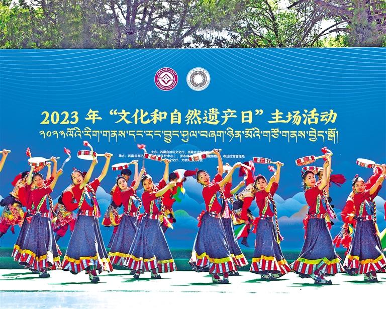 圖為西藏2023年“文化和自然遺產(chǎn)日”主場活動現(xiàn)場,西藏大學藝術學院帶來的舞蹈《東洛熱巴》。記者 旦增蘭澤 攝