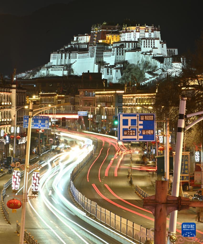 夜晚的布達(dá)拉宮。新華社記者 周荻瀟 攝