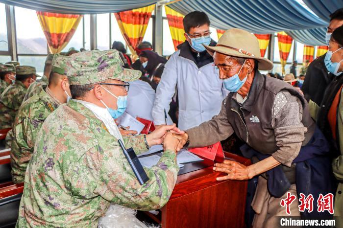 “多年的疾病,今天終于接受了一次系統(tǒng)的檢查和治療,感謝‘金珠瑪米門(mén)巴’(解放軍醫(yī)生)。”村民西繞為外科醫(yī)生王勝獻(xiàn)上潔白的哈達(dá),表達(dá)她的感恩之心,并緊握醫(yī)生的手久久不愿放開(kāi)。