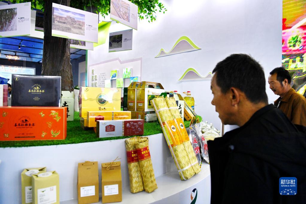 在藏博會(huì)上,來(lái)自西藏山南市隆子縣的參展商展示玉麥特產(chǎn)(6月17日攝)。新華社記者 張汝鋒 攝