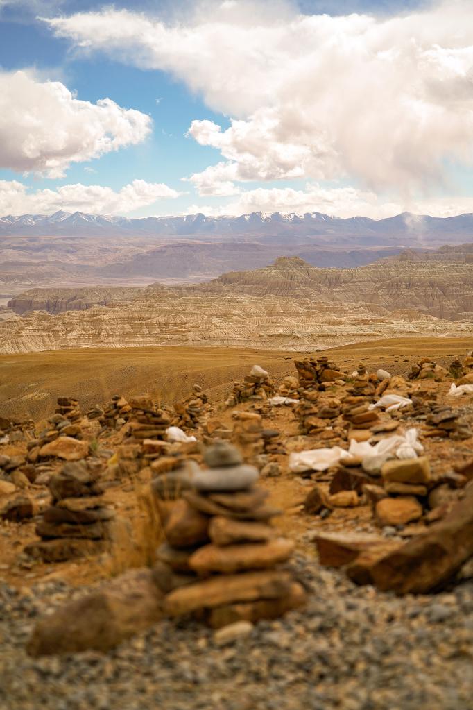 我來到札達(dá)土林的時(shí)候,除了為大自然的鬼斧神工而驚嘆之外,還看到了許許多多用石頭壘成的大大小小的瑪尼石堆。