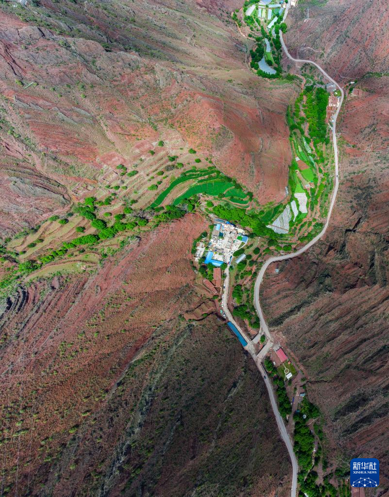 6月21日在國(guó)道317線昌都段拍攝的紅土峽谷地貌(無(wú)人機(jī)照片)。新華社記者 姜帆 攝