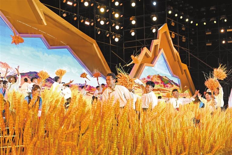 聲,是情的流露;舞,是意的表達(dá)。開(kāi)幕式文藝表演由序《珠峰頌歌》、上篇《戀上青稞》、下篇《極境暢想》和尾聲《吉祥日喀則》組成。序《珠峰頌歌》中,150名演員深情合唱歌曲《珠穆朗瑪》,表演節(jié)奏歡快的男女踢踏舞等,展現(xiàn)日喀則高質(zhì)量發(fā)展的加速度和拼搏奮進(jìn)的精氣神。上篇《戀上青稞》,展示日喀則各族群眾勤勞、樂(lè)觀、向上的精神風(fēng)貌和獨(dú)具魅力的地域文化。下篇《極境暢想》,以青稞美酒作為表現(xiàn)載體,以游客的視角介紹日喀則文旅資源,并通過(guò)藏戲和昆曲等多種文化藝術(shù)碰撞,展示日喀則在打造面向南亞大通道的發(fā)展機(jī)遇中,廣泛開(kāi)展對(duì)外開(kāi)放交流合作。尾聲《吉祥日喀則》,展示日喀則海納百川、開(kāi)放包容的胸襟和熱情。