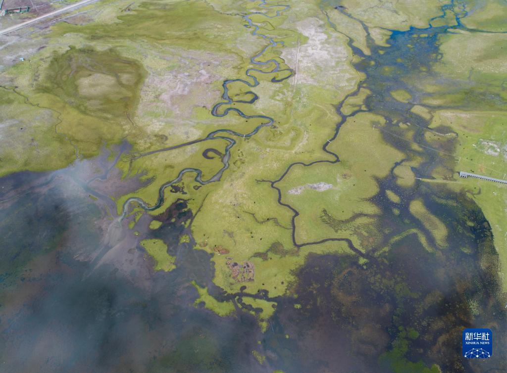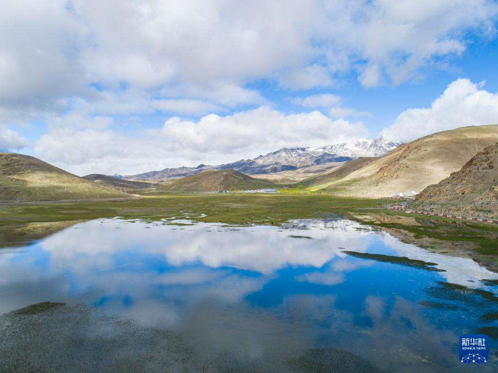 這是錯(cuò)那市區(qū)附近的濕地(6月28日攝,無人機(jī)照片)。新華社記者 孫非 攝