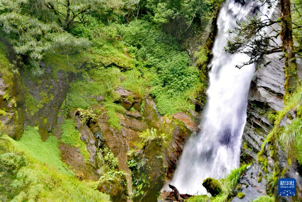 這是勒布溝內(nèi)的一處瀑布(6月27日攝)。新華社記者 劉文博 攝
