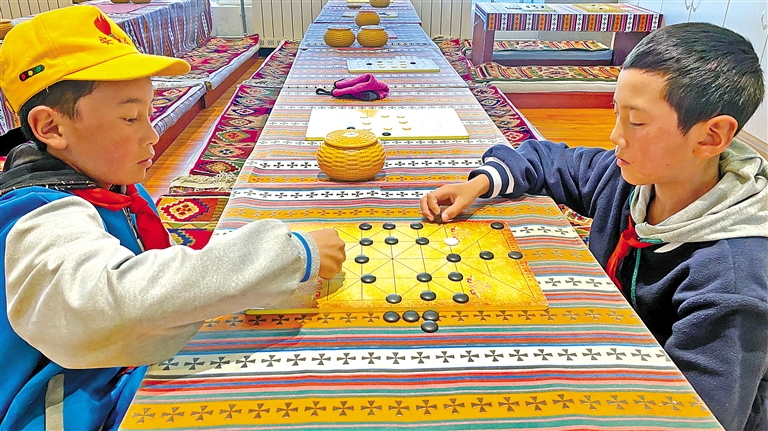 近年來,拉薩市堆龍德慶區(qū)古榮小學(xué)在完成和落實(shí)國(guó)家教育課程的同時(shí),不斷豐富學(xué)生課余文化生活,滿足學(xué)生個(gè)性化發(fā)展的需要,于2015年開設(shè)了國(guó)家級(jí)非物質(zhì)文化遺產(chǎn)代表性項(xiàng)目之一——藏棋課程,成為該校辦學(xué)的特色。