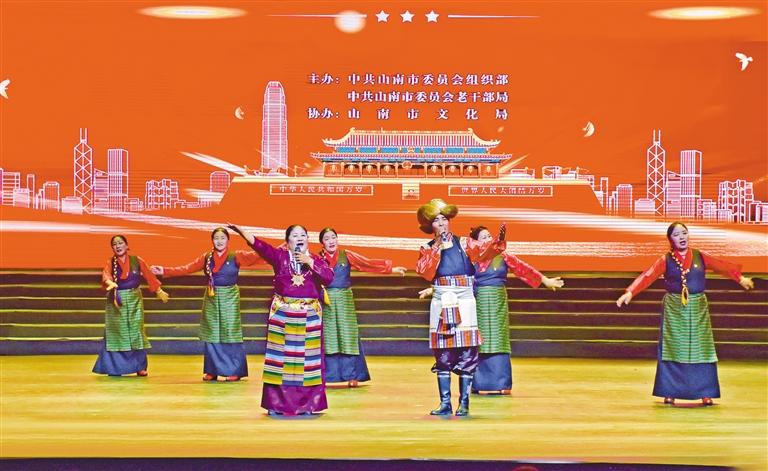 時值“七一”建黨節(jié),山南市委組織部、市委老干部局、市文化局組織全市部分離退休人員,舉辦了一場以“我為‘四個創(chuàng)建’作貢獻(xiàn)”為主題的慶“七一”文藝匯演活動。精神矍鑠的老黨員們用滿腔的熱情、嘹亮的歌聲、歡快的舞蹈回顧黨的光輝歷程,歌頌黨的豐功偉績,謳歌新時代幸福新生活。