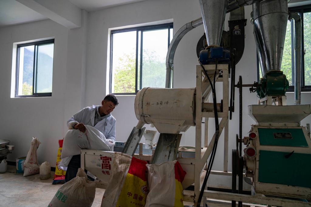 在吉巴鄉(xiāng)吉巴村蕎麥種植加工農(nóng)牧民專(zhuān)業(yè)合作社,一名員工正在加工蕎麥(6月27日攝)。新華社記者 孫非 攝
