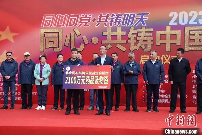 圖為啟動(dòng)儀式上,北京同心共鑄公益基金會(huì)向昌都市捐贈(zèng)了價(jià)值2100萬元人民幣的藥品及物資。 中新社發(fā) “同心·共鑄中國心”組委會(huì)宣傳處 供圖