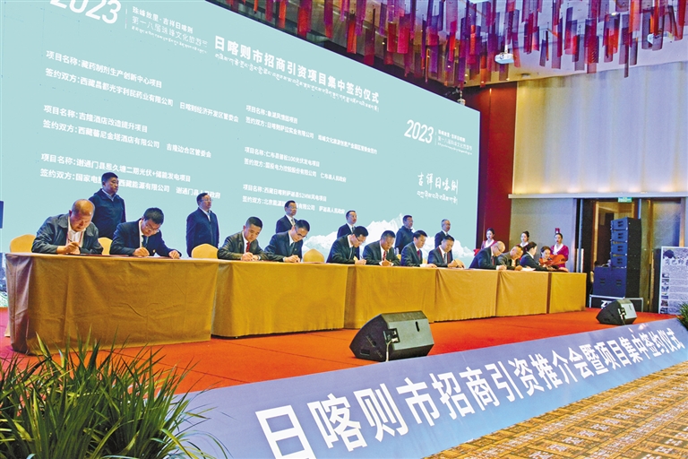 “此次簽約項(xiàng)目都是億元以上的優(yōu)質(zhì)項(xiàng)目,投資強(qiáng)度大、科技含量高、發(fā)展?jié)摿ψ?,涵蓋文化旅游業(yè)、清潔能源產(chǎn)業(yè)、高原特色農(nóng)牧業(yè)、綠色工業(yè)、藏醫(yī)藥產(chǎn)業(yè)、現(xiàn)代服務(wù)業(yè)、邊貿(mào)物流業(yè)、高新數(shù)字產(chǎn)業(yè)八大重點(diǎn)產(chǎn)業(yè)?!比湛t市商務(wù)局局長(zhǎng)馮學(xué)成介紹說(shuō),“項(xiàng)目落地后將為我市產(chǎn)業(yè)建鏈、補(bǔ)鏈、強(qiáng)鏈提供更加堅(jiān)實(shí)有力支撐,也必將為日喀則高質(zhì)量發(fā)展注入新動(dòng)力、激發(fā)新活力。”