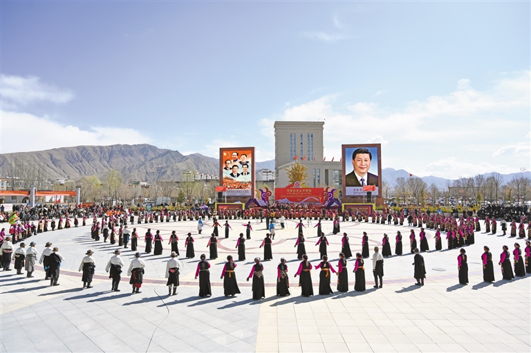 圖為日喀則市紀(jì)念西藏百萬(wàn)農(nóng)奴解放64周年群眾聯(lián)歡活動(dòng)(3月28日攝)。 記者 扎西頓珠 攝