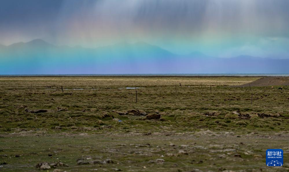 傍晚,一道絢爛的彩虹忽然橫亙?cè)诰嗥宅斀拎l(xiāng)不遠(yuǎn)的湖面上,奪目的光彩引來(lái)眾人圍觀,歡聲笑語(yǔ)久久回蕩在普瑪江塘。