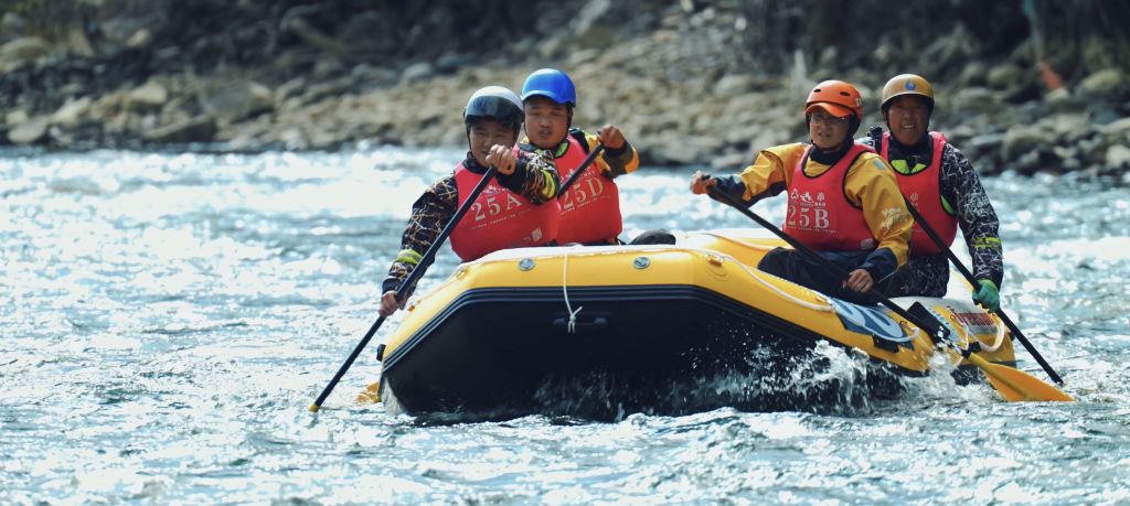 船槳與水的激烈碰撞,成就了扎史品初對(duì)水的駕馭;橡皮艇與浮力的抗擊中,扎史品初挑戰(zhàn)自然,又融入自然。