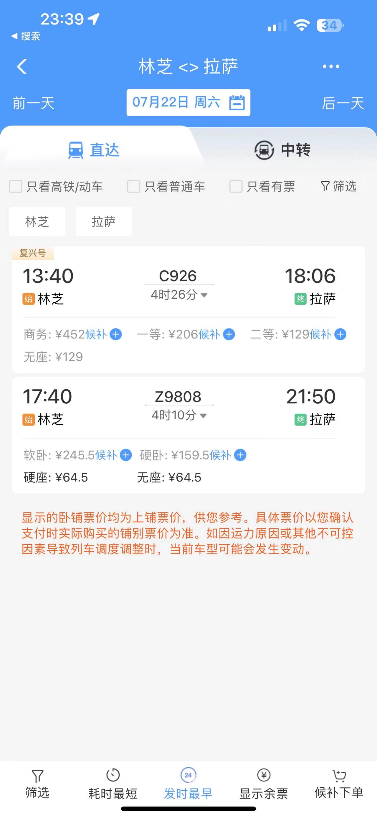 通過(guò)在鐵路售票APP上查詢發(fā)現(xiàn),從林芝開(kāi)往拉薩的復(fù)興號(hào)城際列車的二等座票價(jià)為129元,直達(dá)特快列車硬座為64.5元。“相比較原先180元的客運(yùn)汽車票價(jià),直達(dá)特快列車便宜了近乎三分之一?!辈芟壬锌卣f(shuō)道。