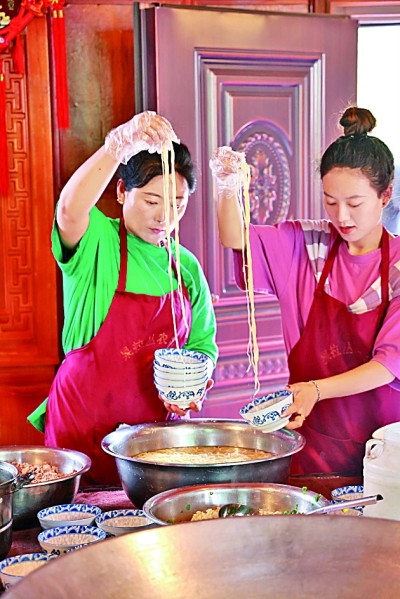 加加面是芒康鹽井的一種美食,顧名思義就是“不停地加”。圖為當(dāng)?shù)匕傩罩谱骷蛹用妗9饷魅請笥浾?劉宇航攝