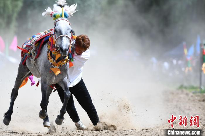 7月24日,在西藏自治區(qū)拉薩市曲水縣曲水鎮(zhèn)茶巴朗村村民身著節(jié)日盛裝進行賽馬和馬術(shù)表演歡度“望果節(jié)”。“望果節(jié)”已有1500多年的歷史,是國家級非物質(zhì)文化遺產(chǎn),流行于西藏拉薩、日喀則、山南等地。