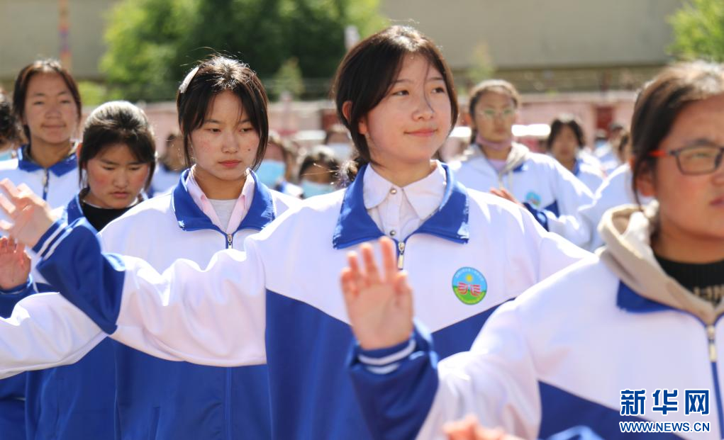 山南市第二高級(jí)中學(xué)的學(xué)生正在操場(chǎng)做課間操(7月17日 攝)。新華社記者 聶毅 攝