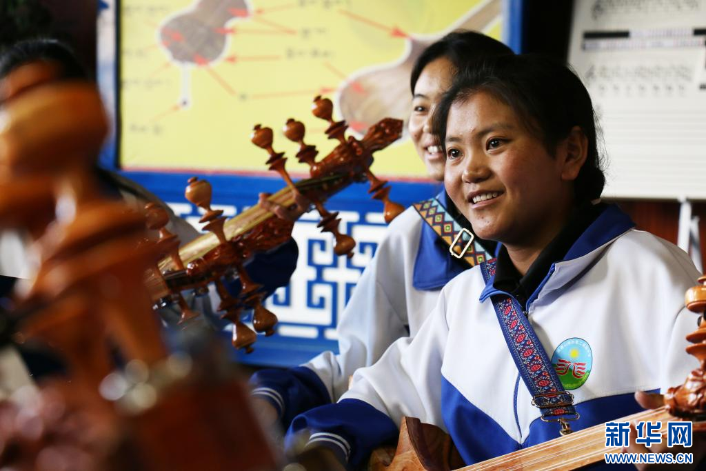 山南市第二高級(jí)中學(xué)學(xué)生正在準(zhǔn)備演奏扎木念(7月17日 攝)。新華社記者 聶毅 攝