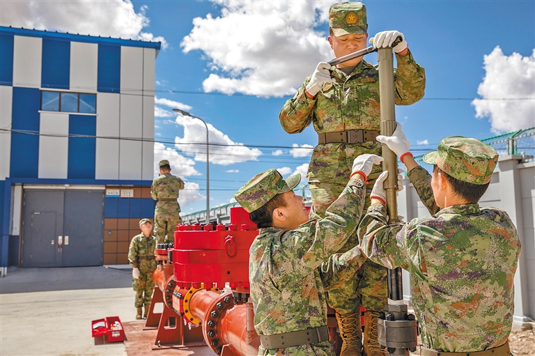 在昆侖山口,軍區(qū)保障部某管線大隊(duì)四中隊(duì)守護(hù)著格拉輸油管線海拔最高一段,這里的100多公里線路橫亙?cè)诤0?500多米的無人區(qū),官兵們不顧高寒缺氧和烈日大風(fēng),沿著山脊逐段排查情況。官兵們紛紛表示,要大力發(fā)揚(yáng)老西藏精神和大隊(duì)“五缺五不缺”精神,面對(duì)自動(dòng)化程度更高、科技含量更高的管線,將以絕對(duì)的忠誠、過硬的本領(lǐng)、無私的奉獻(xiàn),守護(hù)好“雪域大動(dòng)脈”安全,持續(xù)為西藏的繁榮發(fā)展作出更多貢獻(xiàn)。