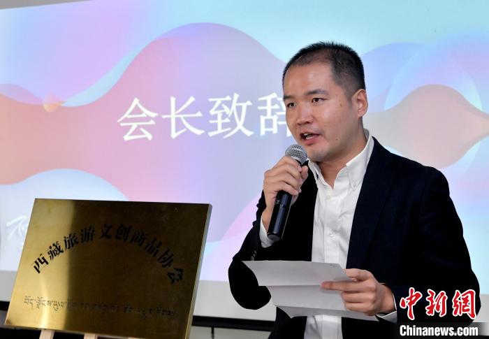 圖為8月4日,西藏旅游文創(chuàng)商品協(xié)會會長張俊彥發(fā)言。李林攝