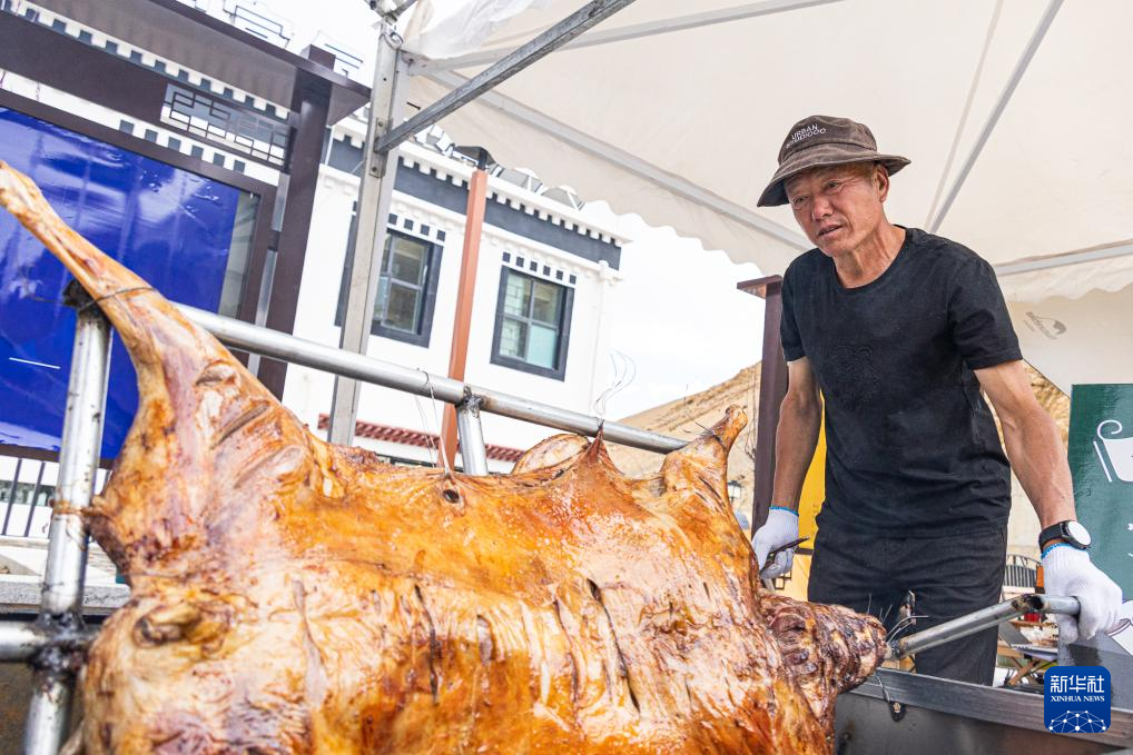 烤全羊制作中。新華社記者 丁增尼達 攝