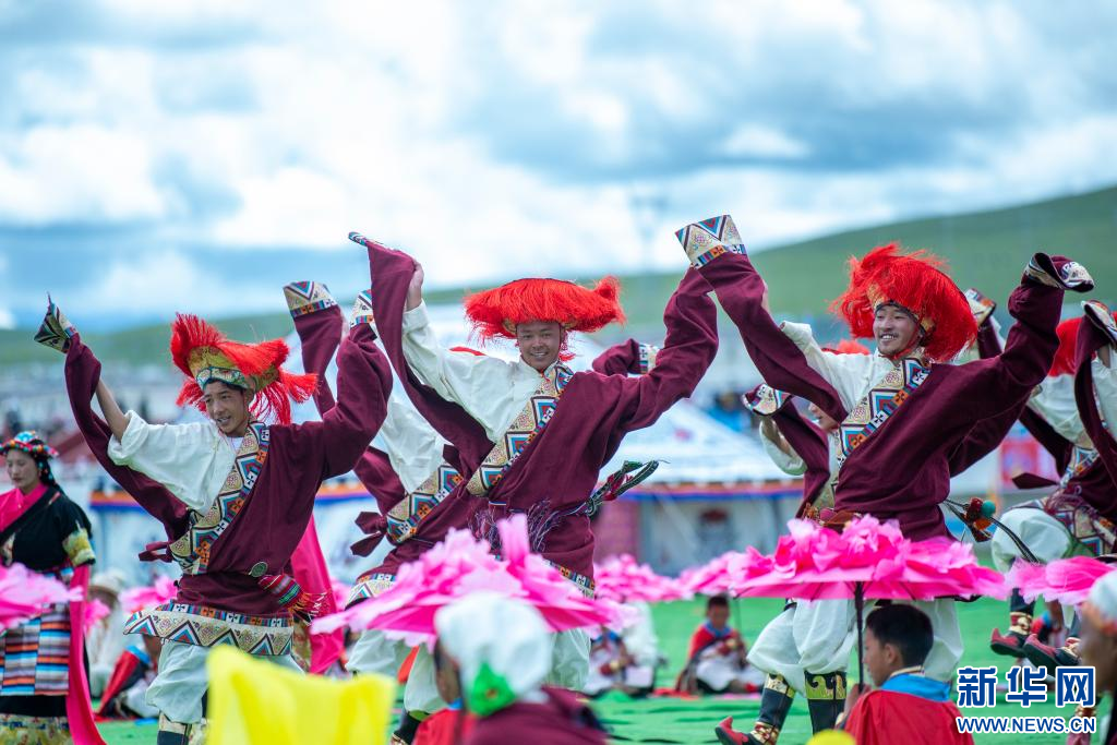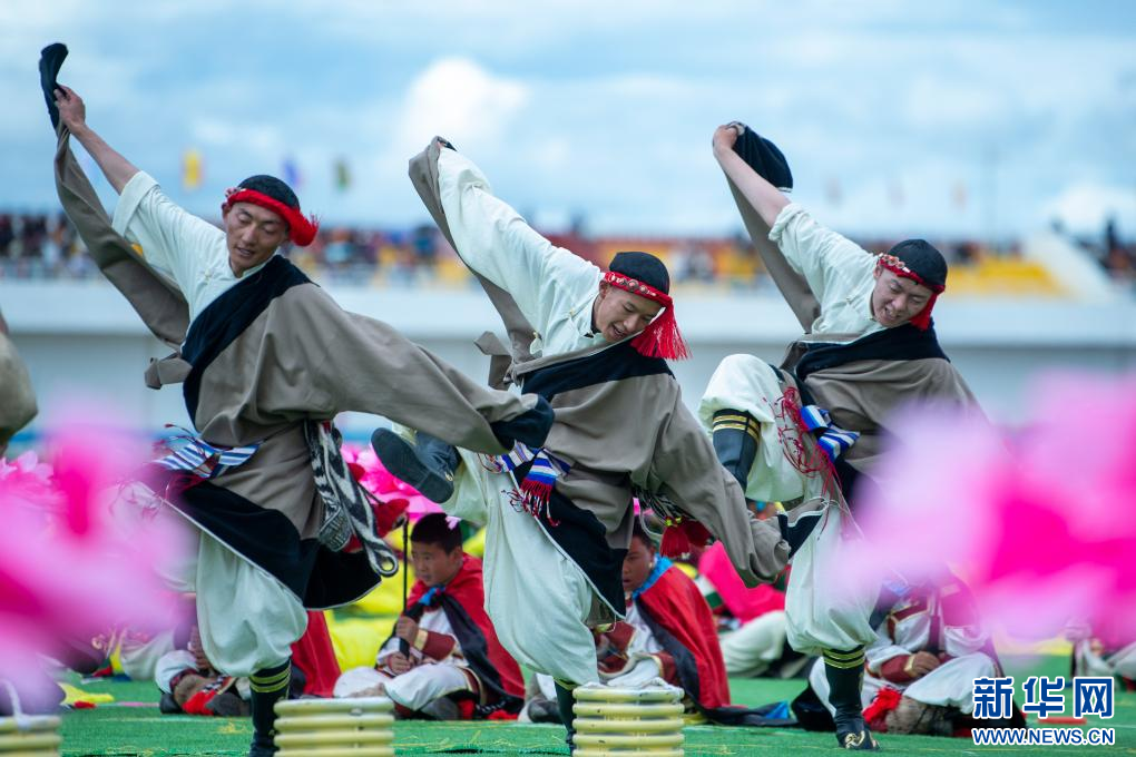 8月10日,演員在開幕式上表演那曲鍋莊。新華網(wǎng) 旦增努布 攝