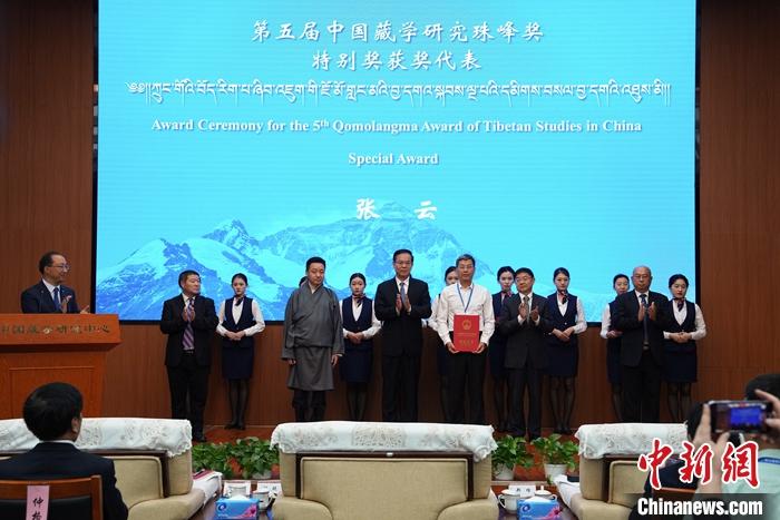 8月14日,第五屆中國(guó)藏學(xué)研究珠峰獎(jiǎng)?lì)C獎(jiǎng)儀式在北京舉行,《元以來西藏地方與中央政府關(guān)系研究(上下冊(cè))》獲特別獎(jiǎng)。 中新社記者 崔楠 攝