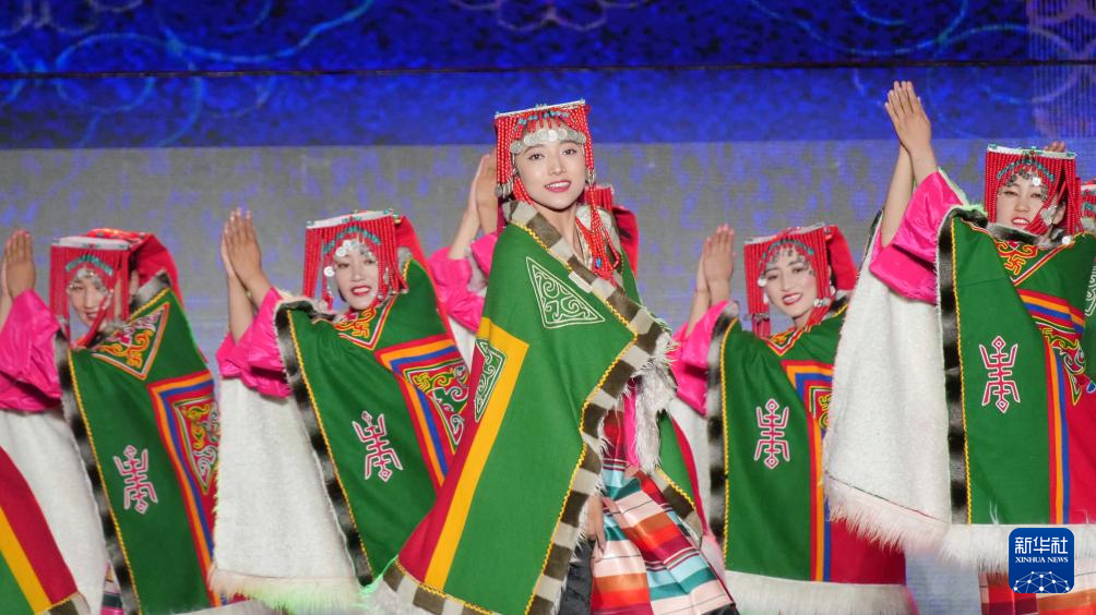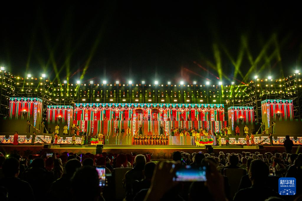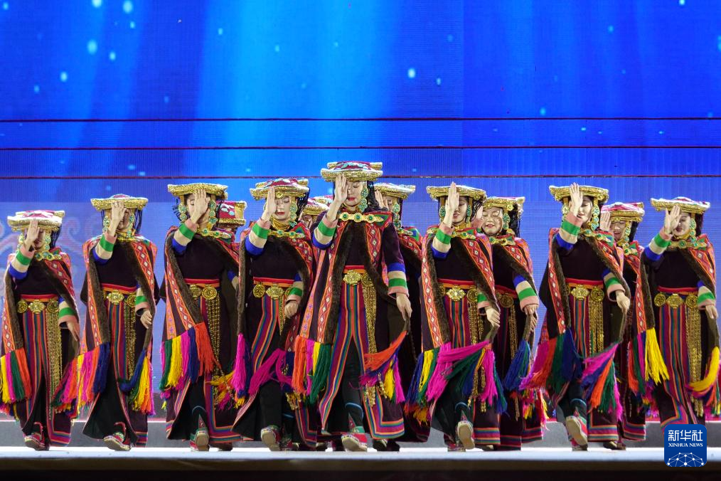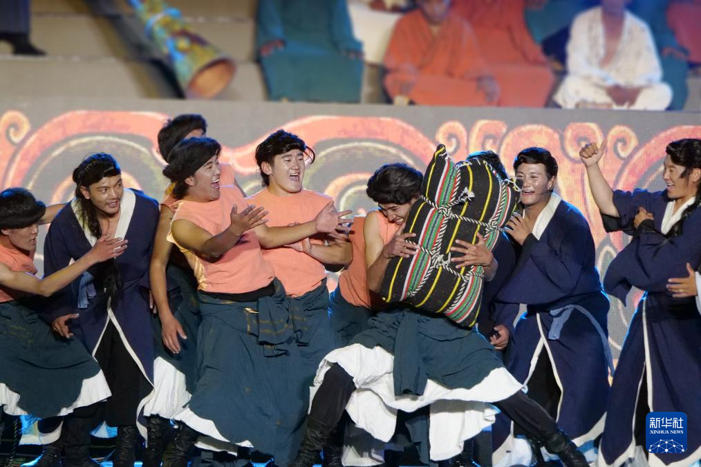 第八屆象雄文化旅游節(jié)開幕式現(xiàn)場的文藝表演(8月21日攝)。新華社發(fā)(旦增努布攝)