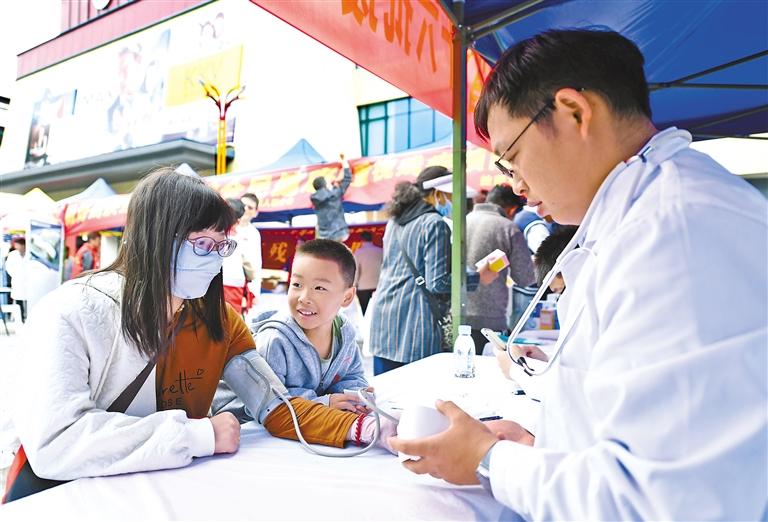 圖為活動(dòng)現(xiàn)場(chǎng),醫(yī)生在為市民測(cè)量血壓。 西藏日?qǐng)?bào)記者 王敏 攝