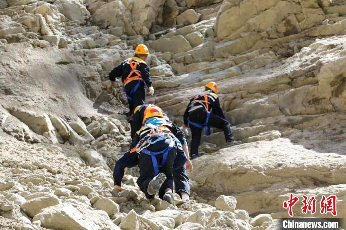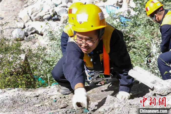 近日,在西藏山南雅魯藏布江畔的拉林鐵路安拉隧道口山崖上,中國鐵路青藏集團(tuán)有限公司拉薩基礎(chǔ)設(shè)施段加查橋隧工區(qū)的職工們對(duì)山體開展巡視,他們一邊攀爬,一邊小心用手錘敲擊巖石,對(duì)有空虛、容易滑落的石塊用自噴漆進(jìn)行標(biāo)記。遠(yuǎn)遠(yuǎn)看去,一群人猶如壁虎穿梭于懸崖峭壁之上。