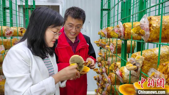 圖為西藏自治區(qū)農(nóng)牧科學(xué)院蔬菜研究所食用菌團(tuán)隊(duì)采收桑黃。貢桑拉姆 攝