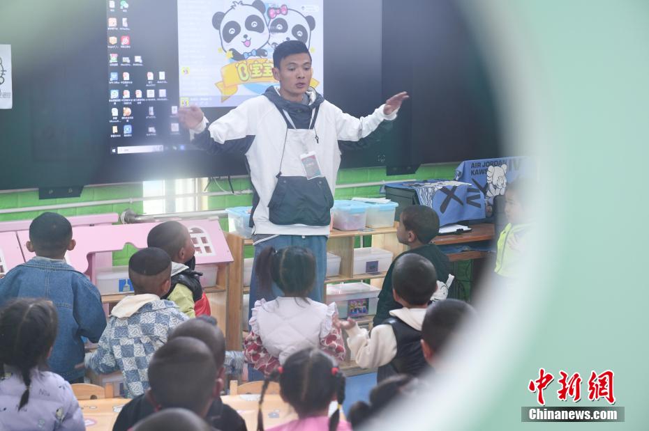圖為那曲市第三幼兒園老師帶學(xué)生做游戲。貢嘎來松 攝
