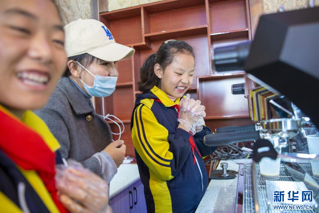 15歲的益西卓姆和13歲的拉巴卓瑪是“咖啡班”的第一批學(xué)生,在制作咖啡方面,她們表現(xiàn)出獨(dú)特的天賦,制作咖啡讓她們收獲了滿滿的成就感。相比起外面買來(lái)的咖啡,拉巴卓瑪覺(jué)得自己做的咖啡更好喝,因?yàn)槔锩嬗小靶腋!钡奈兜馈?/p>