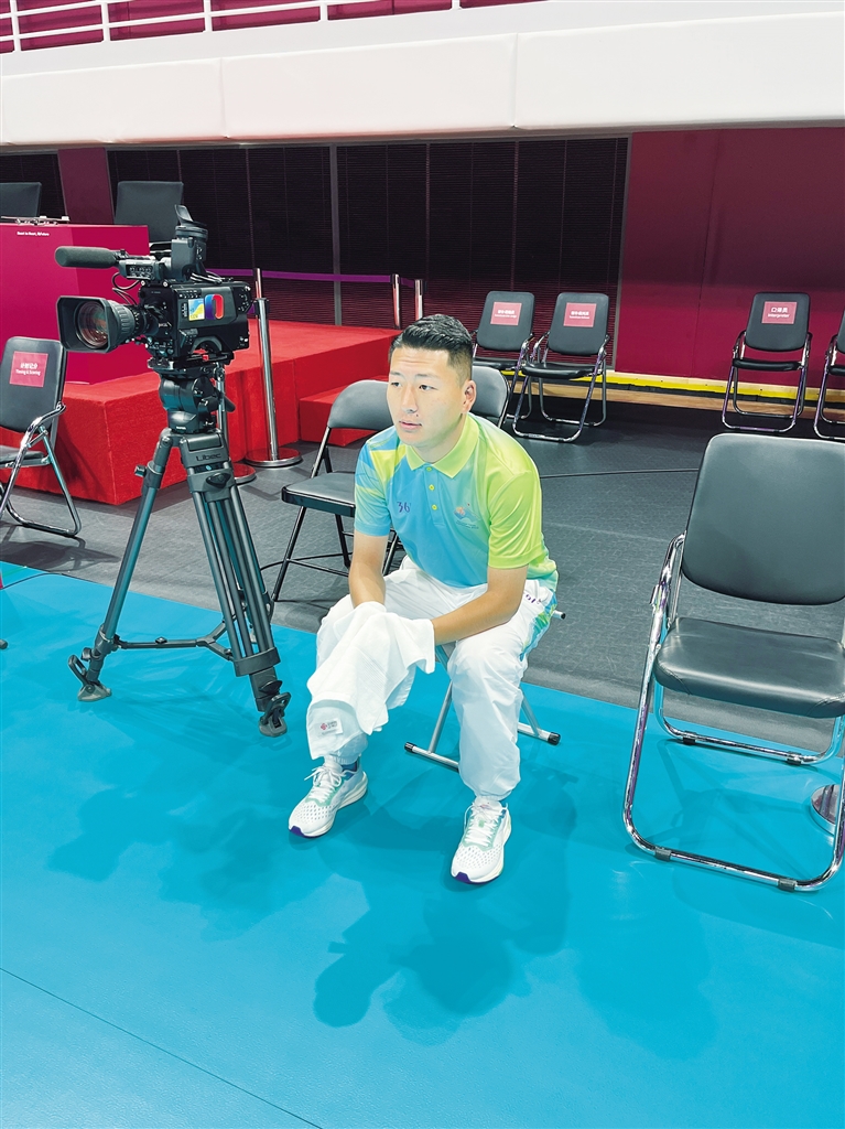 “‘快擦手’主要是在比賽期間手持毛巾,關(guān)注每一個(gè)球員的動(dòng)作,一旦有球員為了救球滑倒在地上,我們要牢記這個(gè)位置,向裁判舉手示意,隨時(shí)需要以百米沖刺的速度沖上賽場、擦干地板,然后快速返回,避免其他失誤?!眮碜阅乔闹驹刚咴湍霞诱f。