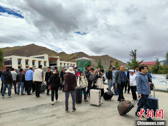 9月23日,乘坐高原復(fù)興號動車組列車的乘客抵達(dá)拉薩火車站。中新社記者 江飛波 攝