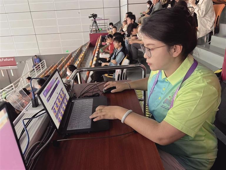 同在攝像助理崗位的塔巴曲珍感受更深刻,因為她親眼見證了中國隊獲勝?!霸诤贾菔信R平體育中心進行的亞運會男排前12名交叉賽中,中國隊以3比1戰(zhàn)勝印度尼西亞隊,當時,我近距離見證了這一精彩時刻?!彼颓浼拥卣f,“平時都是通過電視觀看,沒有太多的情緒起伏。但在現(xiàn)場真的太震撼了,這將會成為我終生難忘的記憶,這些記憶都會是我今后前行路上的動力?!?/p>