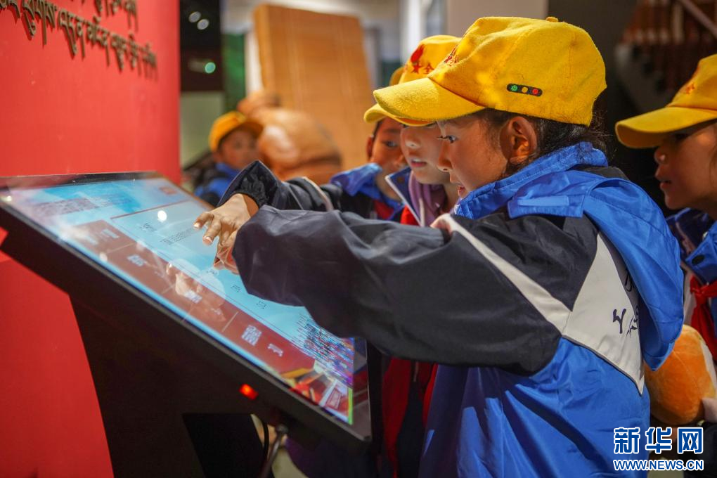 開館儀式當(dāng)天,當(dāng)?shù)匦W(xué)學(xué)生圍在館內(nèi)民族團(tuán)結(jié)知識測試機(jī)器前答題。(9月27日攝)新華社記者 黃智琪 攝