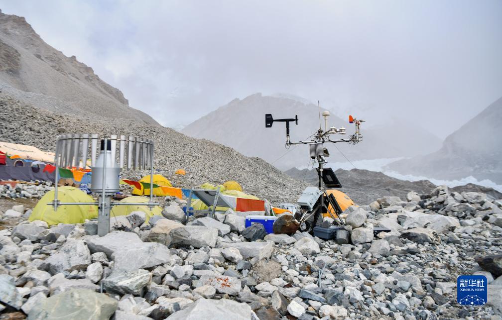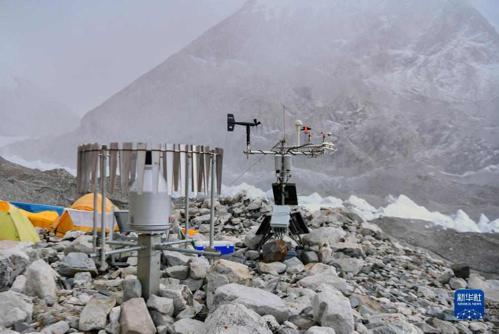 位于海拔5700米卓奧友峰前進營地的自動氣象站(9月29日攝)。新華社記者 晉美多吉 攝