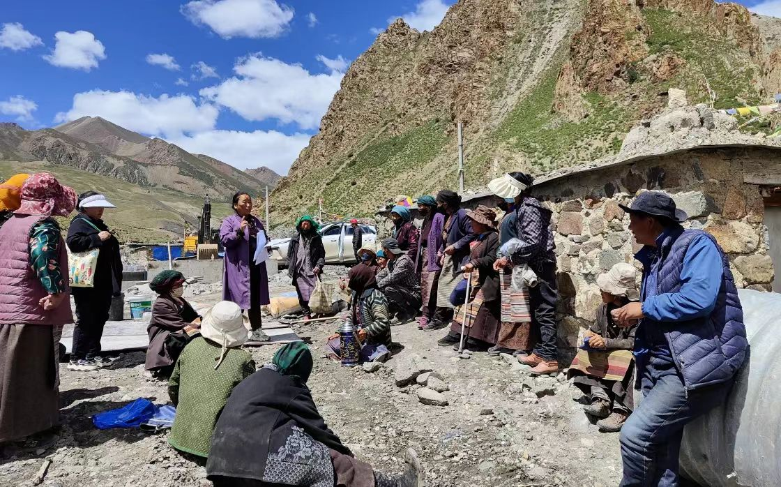 9月初,在雪熱村,縣農(nóng)業(yè)農(nóng)村局的畜牧業(yè)專(zhuān)技人員卓嘎結(jié)合鑄牢中華民族共同體意識(shí)和“三個(gè)意識(shí)”,宣講草原生態(tài)補(bǔ)獎(jiǎng)?wù)摺⑴Q虺鍪垩a(bǔ)貼、農(nóng)機(jī)具購(gòu)置補(bǔ)貼等與群眾生產(chǎn)生活息息相關(guān)的政策,炎熱的天氣絲毫不影響群眾聆聽(tīng)宣講的熱情。