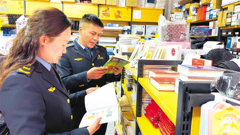 圖為山南市瓊結縣市場監(jiān)督管理局執(zhí)法人員在某書店檢查。記者 白瑪澤旺 通訊員 倫珠澤仁 攝