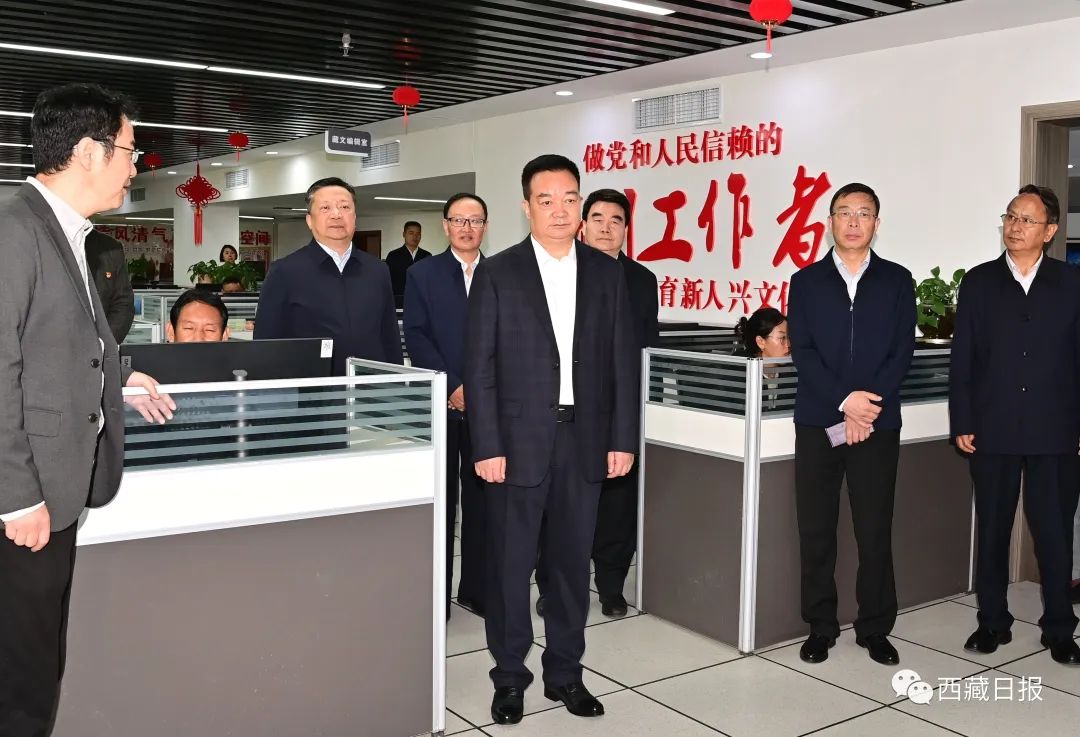 2023年9月25日,自治區(qū)黨委書記王君正來到西藏日報社、西藏廣播電視臺調(diào)研。這是王君正在西藏日報社詳細了解市場化運營、全媒體傳播體系建設、媒體深度融合發(fā)展等情況。記者 旦增西旦 攝